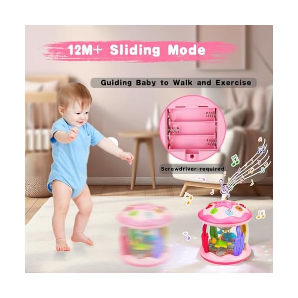Infant Crawling Toys: The infant baby girl toys 6-12 months have wheels which can both roll and glide, with two play ways for your baby to choose from. Interesting sound effects and light patterns can quickly attract your child’s attention to follow the crawl, help the baby’s physical growth, and promote their vision and hearing development