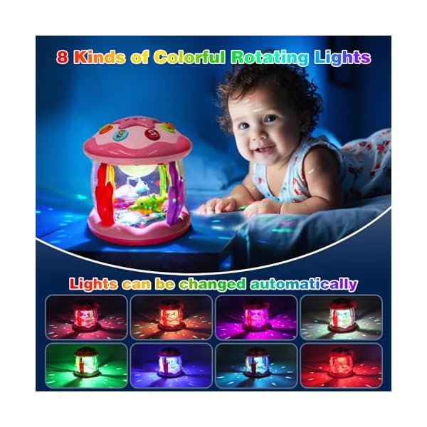 Gift Ides for Babies: This ocean rotating light up toy is a practical baby gift that promotes vision and hearing development, develops musical talents, exercises hand-foot coordination. Suitable for 1 year old girl gifts, and 1-2 year old infant girls birthday gift. (After receiving the musical toy, use a screwdriver to open the bottom cover, insert the 3 AA batteries, and press the volume adjustment button to start using it)