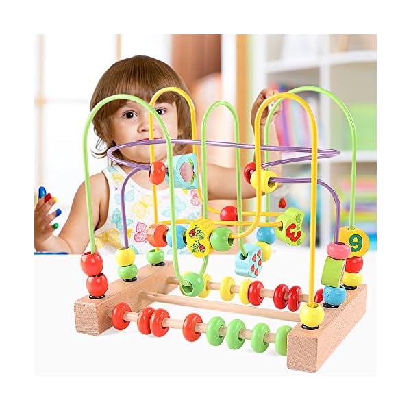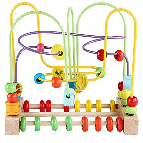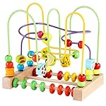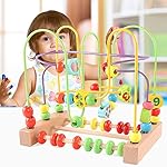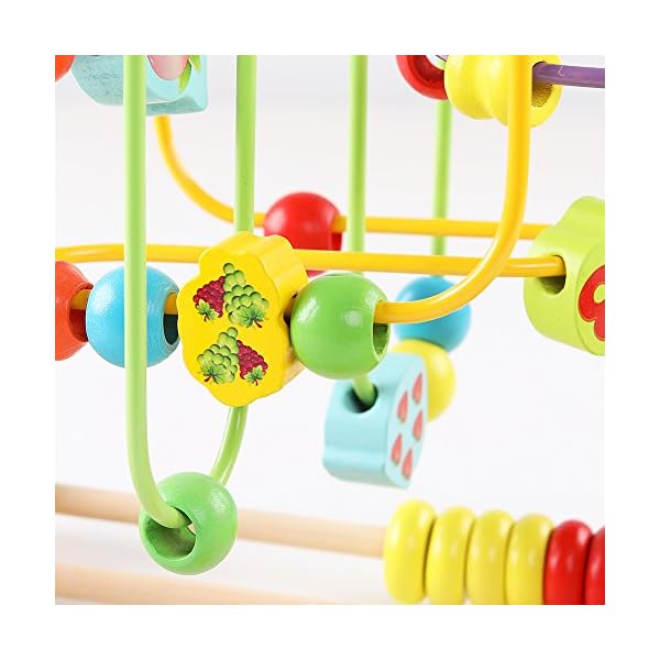 Introduce your toddler to a world of learning and fun with this wooden bead maze toy. This colorful toy features animal and fruit-shaped beads that glide along twisting wire tracks, promoting hand-eye coordination and spatial awareness. The integrated abacus allows for early counting practice, making it an excellent tool for developing basic math skills.