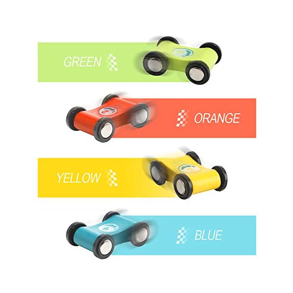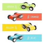 Crafted from solid wood and sturdy plastic, this toy uses BPA-free, non-toxic materials with water-based paint to ensure child-safe play. The wood is sanded smooth and edges are rounded to protect curious fingers. Cars slot into the ramp securely without jamming.