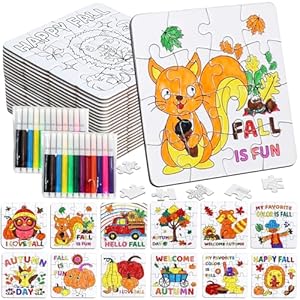 Thanksgiving Fall Crafts for Boys, Girls & Adults, Thanksgiving Arts and Crafts Kit DIY Puzzle with Pumpkin Leaf Turkey Owl, Fall Classroom Activities for Halloween Party Favors & Gift Supplies Bulk